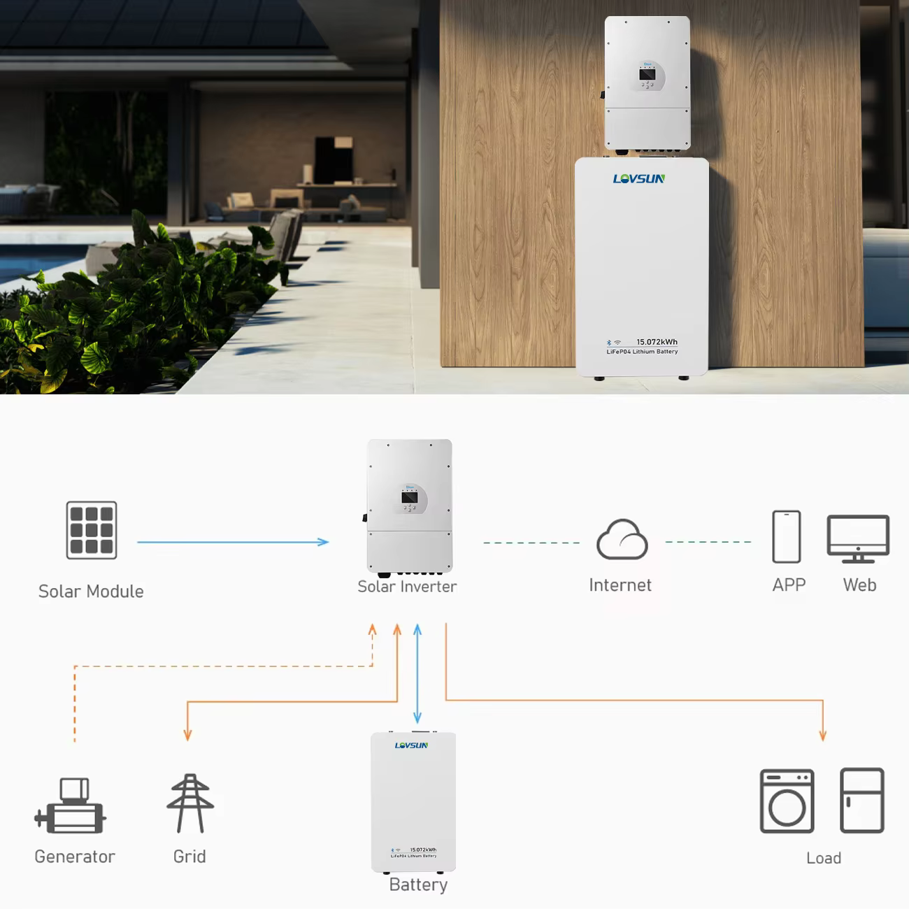 baterai Penyimpanan Energi LifePO4 15KWh, Dipasang di Lantai